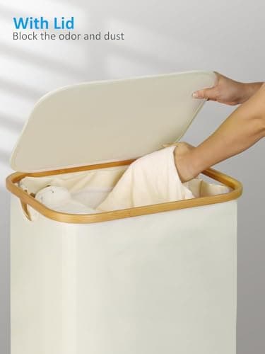 Lifewit 105L Large Laundry Basket with Lid, Laundry Hamper with Plastic Handles and Removable Bag, Foldable Tall Dirty Clothes Hampers for Laundry for Laundry Room, Bedroom, Bathroom, Dorm, Beige