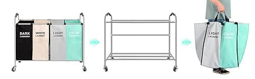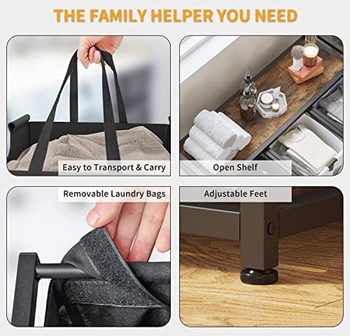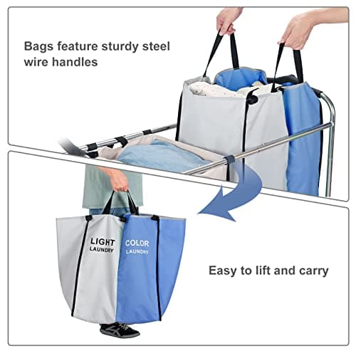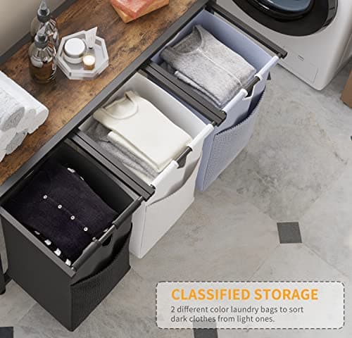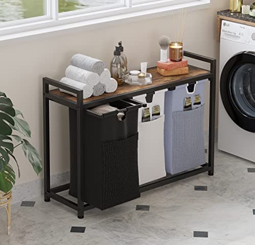 LIVEHOM Laundry Basket Three Laundry Hamper with Removable Bags, Fabric Handles, Large Top Shelf and Laundry Bag for Bathroom, Dorm, Laundry Room