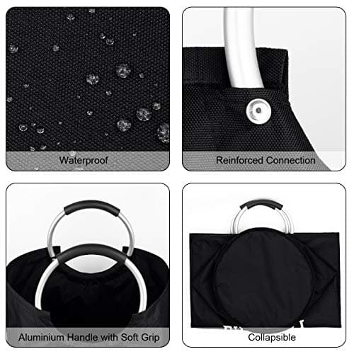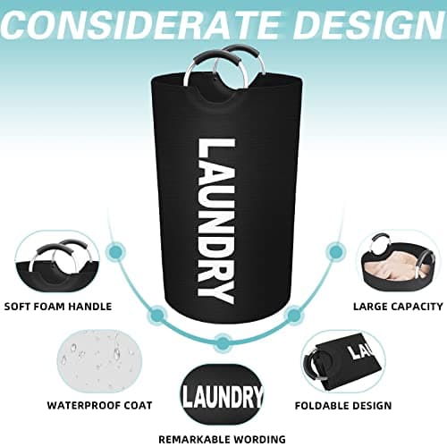 StorageRight 90L Large Laundry Basket, Laundry Hamper, Dirty Clothes Hamper for Laundry, Collapsible, Waterproof Laundry Baskets with Foam Protected Aluminum Handles for Laundry, Dorm, Family (Black)