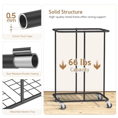 150L Laundry Hamper with Wheels, Rolling Laundry Basket with Metal Frame and Removable Bag, Large & Tall Dirty Clothes Hampers for Bedroom Aesthetic, Laundry Room, Bathroom, Dorm-Black