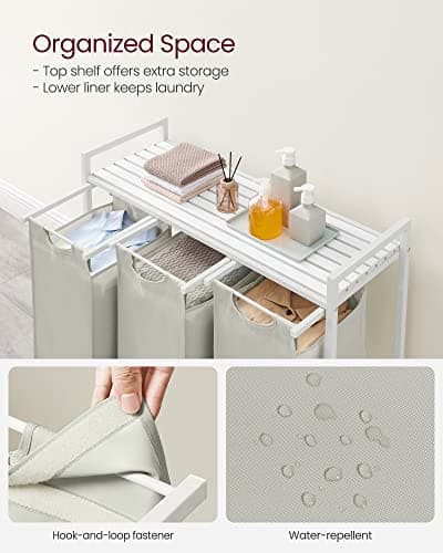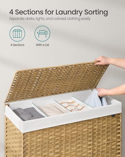 efluky Laundry Hamper with Lid, Trio Laundry Hamper with 3 Removable Bags, 3 Section Laundry Basket with Bamboo Handles for Bathroom, Bedroom & Laundry Room, 160L Beige