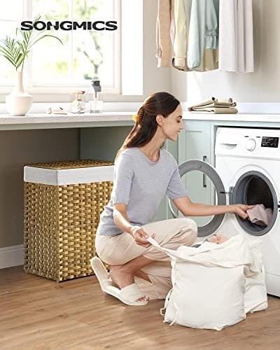SONGMICS Laundry Hamper with Lid, 90L Clothes Hamper with 2 Removable Liner Bags, 6 Mesh Bags, Wicker Laundry Basket, Double Laundry Hamper for Bathroom, 13 x 18.1 x 23.6 Inches, Gray ULCB251G01V1