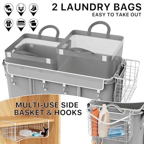 STORAGE MANIAC Laundry Sorter 2 Section, 90 L Gal Laundry Hamper with Wheels, Clothes Basket Separator Sorter, 2 Bag Clothes Cart with Wheels and Removable Bags for Closet, Dorm, Collage, Grey