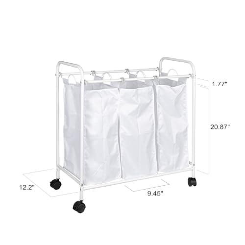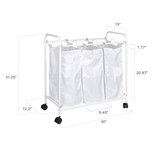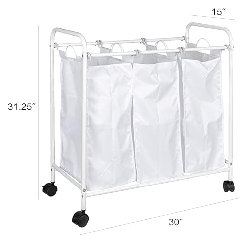 Simple Houseware Heavy-Duty 3-Bag Laundry Sorter Cart, Silver