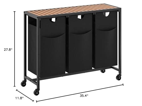 Oceanstar XBS1484 Bamboo 3-Bag Laundry Sorter Black, 29.75 in. H x 19.10 in. W x 27 in.