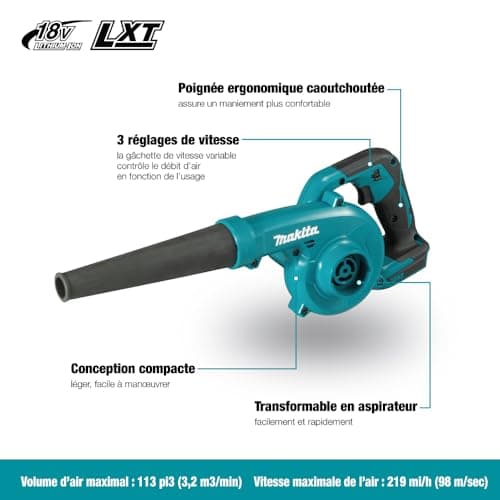 Makita DUB185Z Cordless Handheld Leaf Blower Powered by 18V LXT Li-Ion Battery