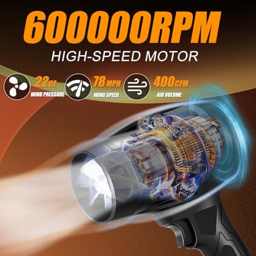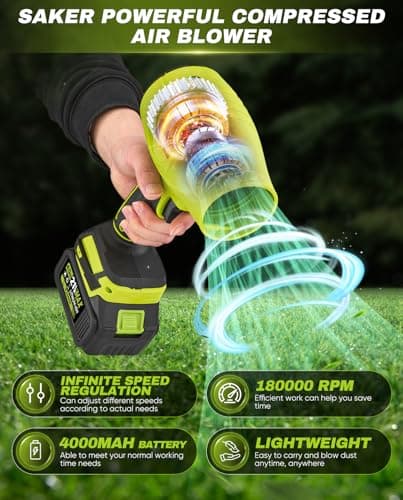 SEESE Turbo Jet Leaf Blower: Cordless Leaf Blower for Yard Leaves, Driveway Sand & Car Drying - 800,000 RPM High Speed with Ergonomic Handle for Easy Operation