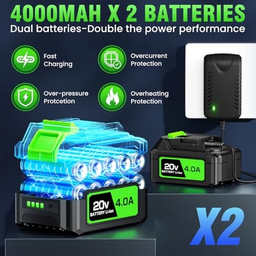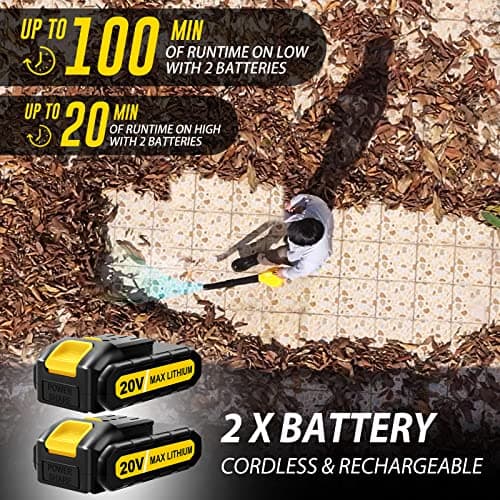 MZK Cordless Leaf Blower,20V Battery Powered Electric Blower for Lawn Care, Electric Lightweight Leaf Blower for Blowing Leaves, Patio Cleaning and Dust(2 * 2Ah Battery & Charger Included),LF40D13