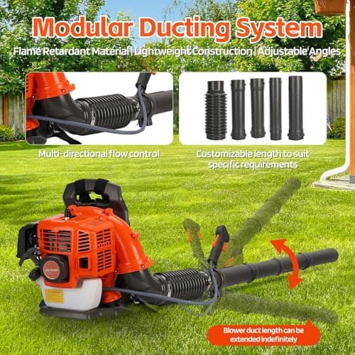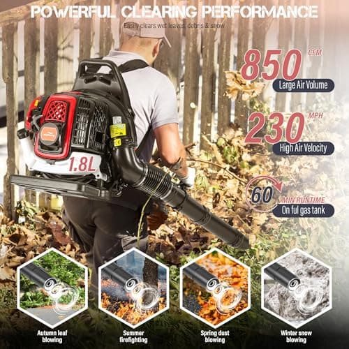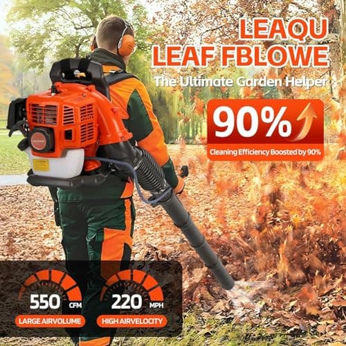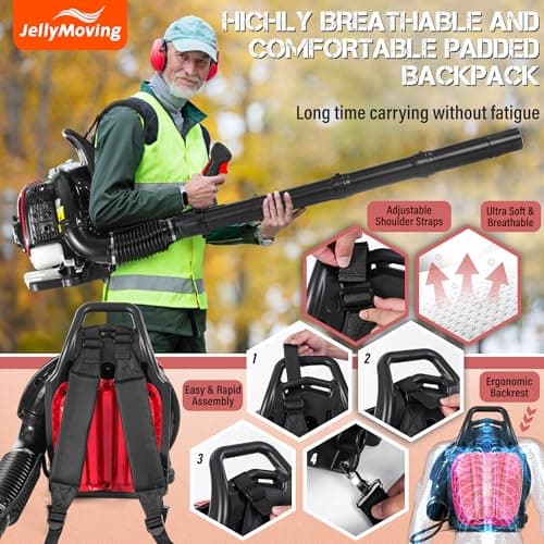 JellyMoving 65CC 2-Stroke Backpack Leaf Blower Gas Powered, 850CFM 230MPH Powerful Wind, Cruise Control, High-Efficient Commercial Gas Leaf Blower for Yard Lawn Care, Debris Dust & Leaf Cleaning