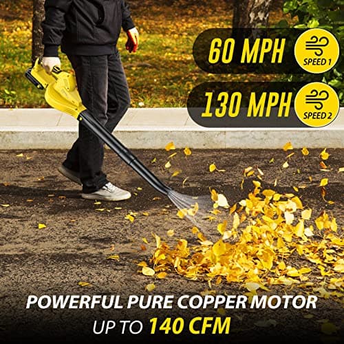 SNJORT Leaf Blower Cordless with Battery and Charger, 980,000 RPM, Extended Nozzle, Lightweight Handheld Design,Blower for Patio Cleaning,car Blowing Water, Blowing Leaves and Dust (Ginkgo Yellow)