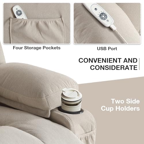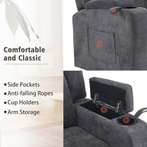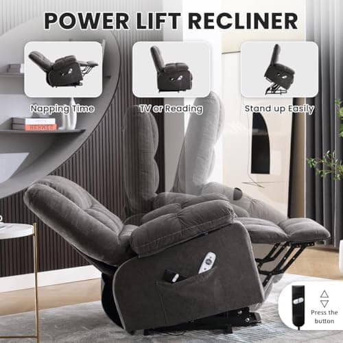 After support, narrow by layout and construction. Compare living and family rooms, bedrooms and recovery rooms, and apartments and small spaces, then compare power lift recliners, fabric and linen, faux leather and PU, and cup-holder and side-storage setups.