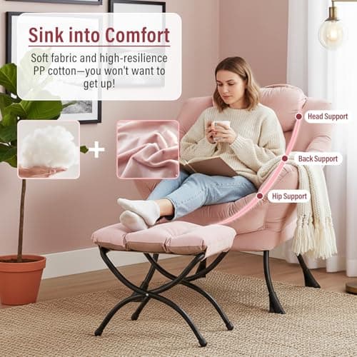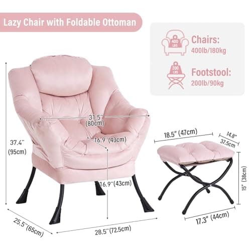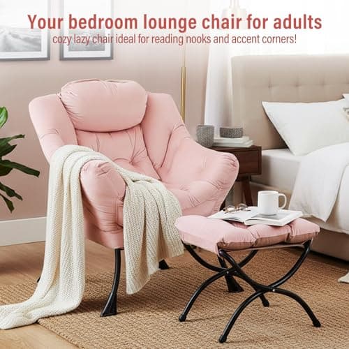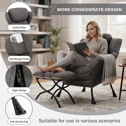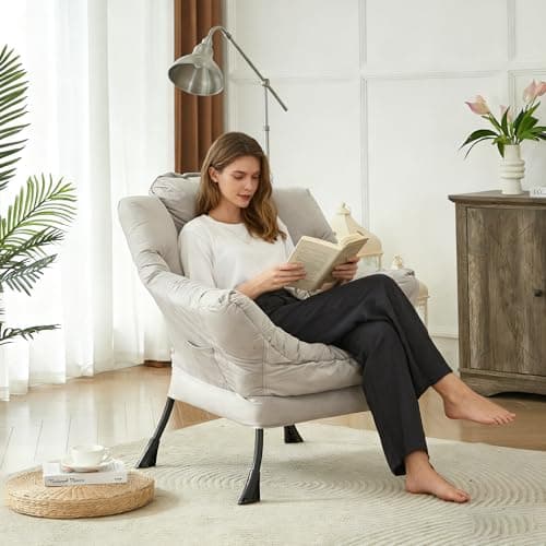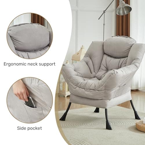 HollyHOME Lazy Chair with Armrest and Side Pocket, Comfy Accent Lounge Chair,Leisure Sofa Armchair for Living Room, Bedroom, Dorm, or Small Spaces, Oversized Reading Sofa Chair,Textured Grey