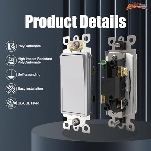 ![[20-Pack] PROCURU Decorator Paddle Rocker Light Switch, Single Pole, 3-Wire, Grounding 15A 120V-277V, White, UL Certified, Includes Wall Plate Covers](/essentials/_next/image?url=https%3A%2F%2Fm.media-amazon.com%2Fimages%2FI%2F41eiGCy0yCL._SL500_.jpg&w=3840&q=75)