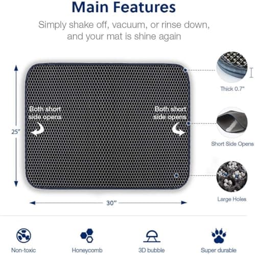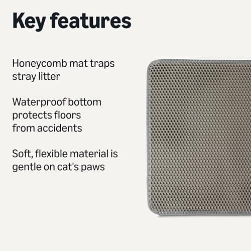 Amazon Basics Double-Layer Cat Litter Mat, Honeycomb Design with Scatter Control, Waterproof & Urine-Proof, Non-Slip Trapper Mat, Soft on Paws, Grey, 30" x 24"