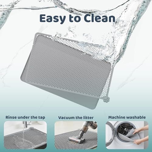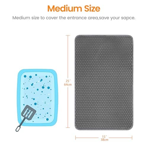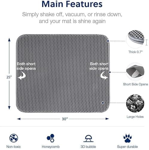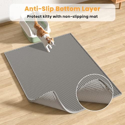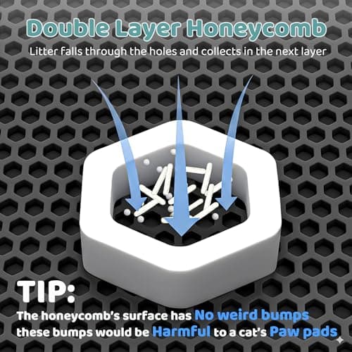 GORILLA GRIP Honeycomb Cat Litter Box Mat, Two Layer Trapping Waste Mats, Soft On Paws, Litter Box Supplies and Essentials for Indoor Cats, Traps Excess, Water Resistant for Floors, 24x15 Gray
