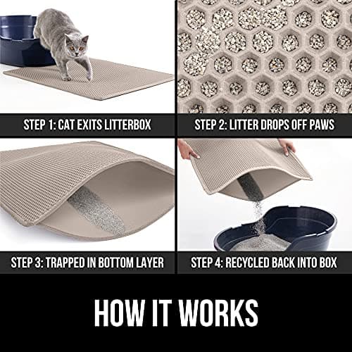 GORILLA GRIP Cat Litter Box Mat, 35x23, Cushioned Coil Mesh Litter Trapping Mats, Scatter Control Supplies for Less Mess, Phthalate Free, Ultra Deep Catch Grooves, Rinse or Vacuum to Clean, Gray