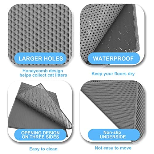 Pieviev Cat Litter Mat Double Layer Waterproof Urine Proof Trapping Mat 1 Pack (Gray, 30x24 Inch (Pack of 1))