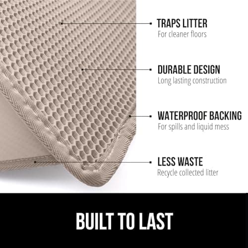 GORILLA GRIP Honeycomb Cat Litter Box Mat, Two Layer Trapping Waste Mats, Soft On Paws, Litter Box Supplies and Essentials for Indoor Cats, Traps Excess, Water Resistant for Floors, 24x15 Beige
