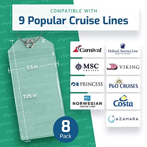 Highwind 4 Pack Cruise Luggage Tag Holder for Suitcases - Travel Essentials, Compatible with Major Cruise Lines - Waterproof Luggage Tags for Suitcases with Secure Attachment - Zip Seal, Steel Loops