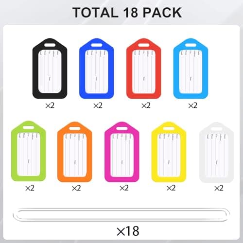 Sodsay 18 PK Luggage Tags for Suitcases (Assorted, Pack of 18 with 9 Vibrant Colors), Luggage Tag, Bag Tag for Baggage, Suitcase Tags Bulk