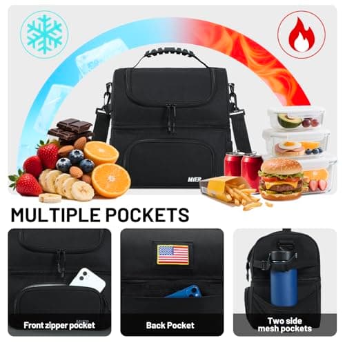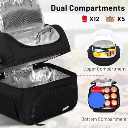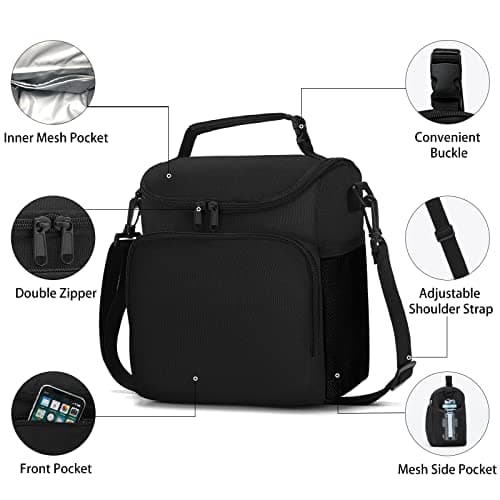 MIER Dual Compartment Lunch Bag Tote with Shoulder Strap for Men and Women Insulated Leakproof Cooler Bag, Black
