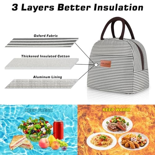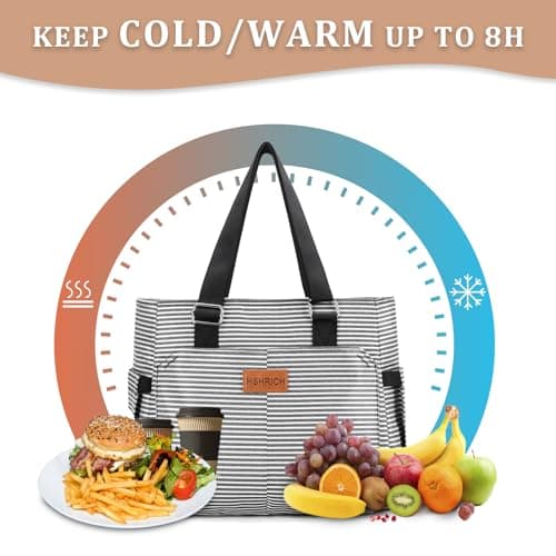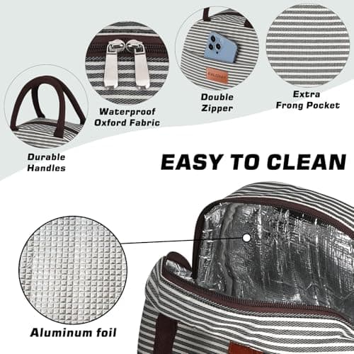 BALORAY Lunch Bag for Women Men Insulated Lunch Box for Adult Reusable Lunch Tote Bag for Work, Picnic or Travel(Black White Stripes)