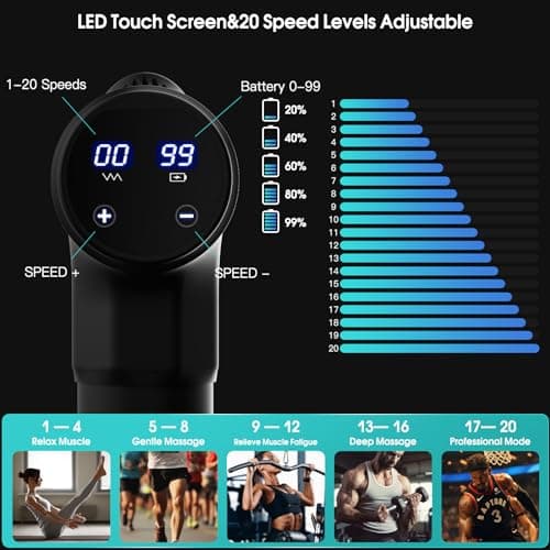 cotsoco Massage Gun, Muscle Massage Gun Deep Tissue Back Massager for Pain Relief, 20 Speeds Handheld Electric Massager Tool with Silent Brushless Motor, Suitable for Gym Office Home Travel