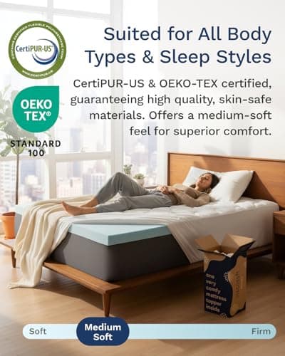 The key difference here is thickness and material. A 2-inch topper gives subtle softening, while 3-4 inches provides more noticeable relief. Gel-infused memory foam works better than standard foam if you sleep hot. Brands like Linenspa and ViscoSoft dominate this space at mid-range prices, offering certified materials without breaking the bank.