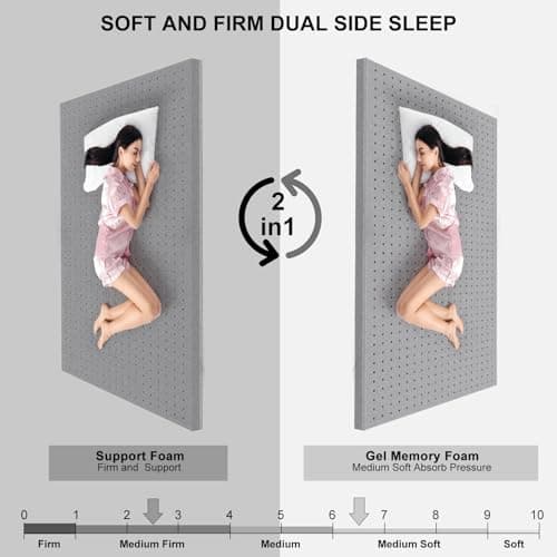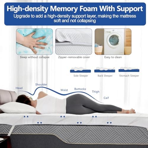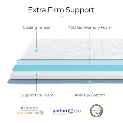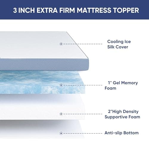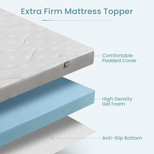 Firm mattress toppers in this category offer a denser construction and often feature layered memory foam or gel-infused designs that combine pressure relief with a noticeably firmer feel compared to softer or plush toppers.