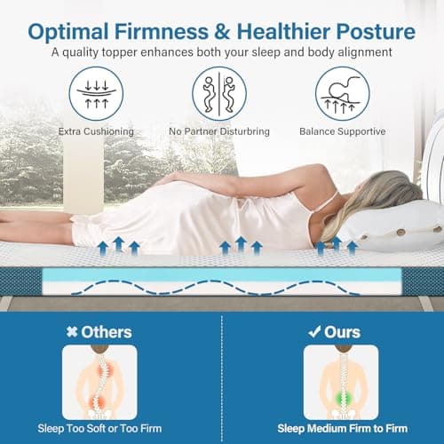 The key difference from general toppers is that firm ones work best if your mattress is already too soft or you need extra support for back pain. A 2-3 inch thickness usually does the job without making your bed feel like a cloud. Gel-infused memory foam (like what you'll find in Linenspa and LUCID options) keeps things cool while maintaining that supportive feel.