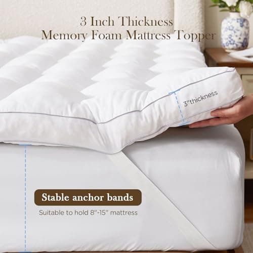 Thickness matters too—2 inches is budget-friendly and subtle, while 3-4 inches gives you that cloud-like plush feel. Make sure it fits your bed frame depth, especially if you have a deep mattress.