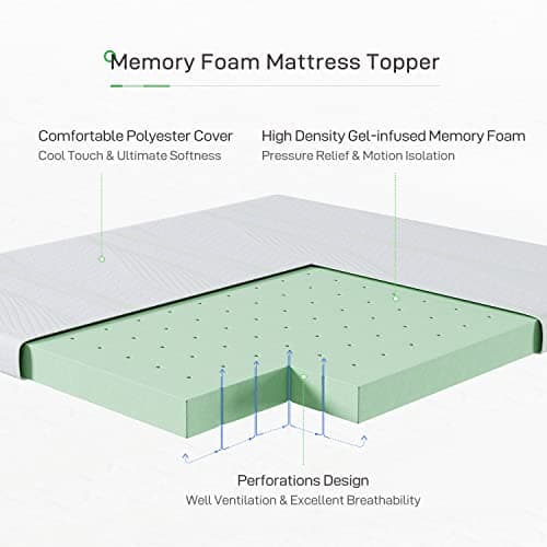 Best Price Mattress 1.5 Inch Ventilated Memory Foam Mattress Topper, Cooling Gel Infusion, CertiPUR-US Certified, Dorm Essentials, Queen