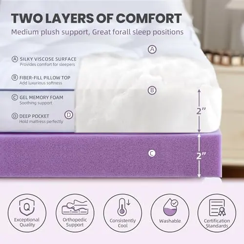 Medium mattress toppers hit the sweet spot if your current bed feels either too firm or too soft. They're designed to add balanced support and comfort without completely transforming your sleep surface. Brands like ViscoSoft, Sleep Innovations, and Tempur-Pedic dominate this category with gel-infused memory foam options that keep you cool while cradling pressure points.