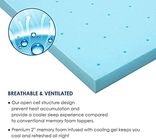 Linenspa Memory Foam Mattress Topper, Queen Size - 2 Inch Gel Infused Memory Foam - Plush Feel - Cooling and Pressure Relieving - CertiPUR Certified