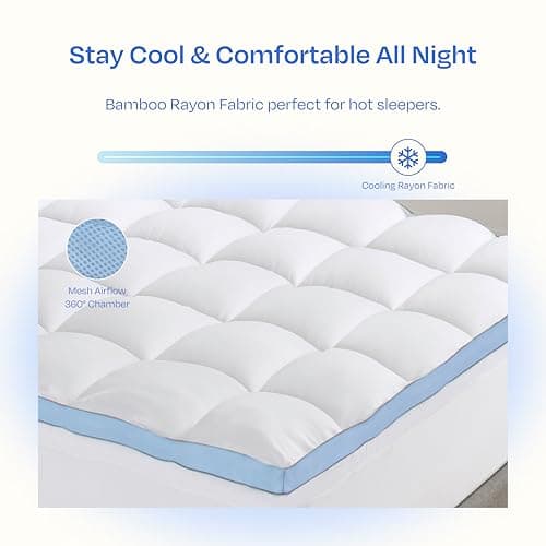 Down alternative toppers like LUCID's fiber fill are great if you want softness without the allergen concerns. Check the cover material too—breathable cotton or rayon keeps things fresh longer.