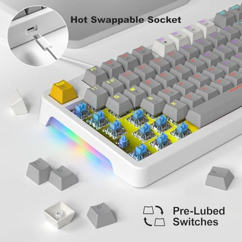AK96 Smart Mechanical Keyboard Gaming, 96 Keys Full Size with LED Colorful Backlit, Clicky Creamy Sounding, USB Wired Computer Keyboard with Volume Knob for PC, Mac, Windows(Grey)