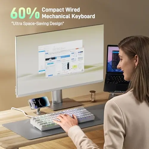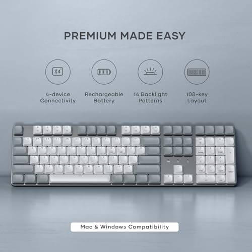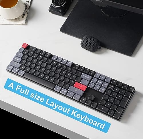 The cost is footprint. A full-size board takes more desk space and leaves less room for mouse movement than a compact layout. If you are balancing work utility against desk efficiency, compare this page with TKL mechanical keyboards. If your main use is office productivity, also compare with mechanical keyboards for office work.