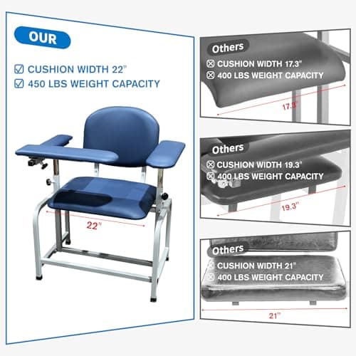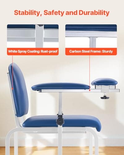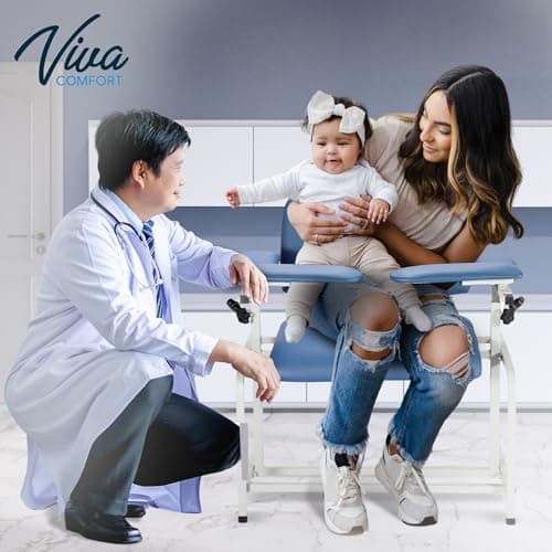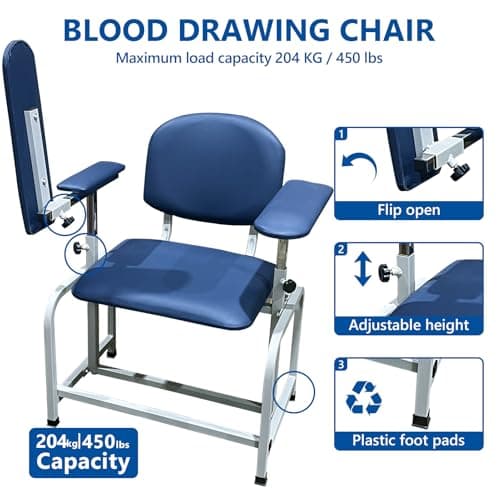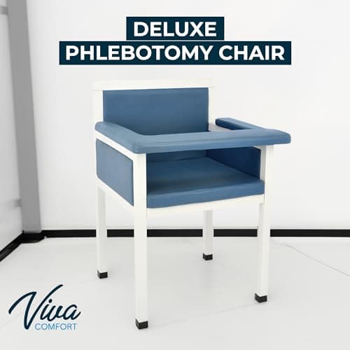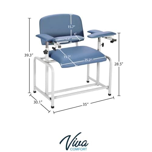 VivaComfort Blue Phlebotomy Chair with Adjustable Armrest, Blood Draw Chair, Large Weight Capacity Comfortable Lab Medical Chair