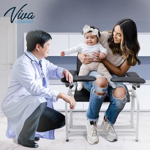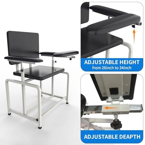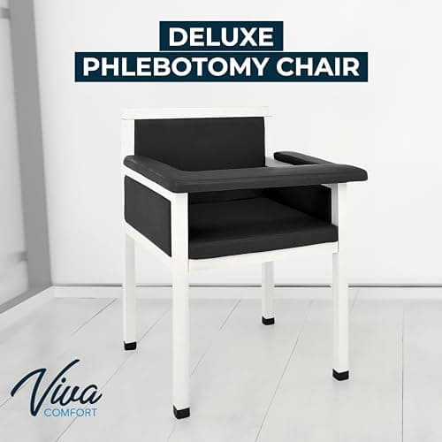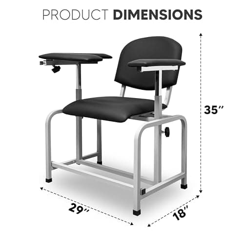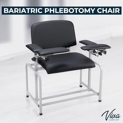 VivaComfort Black Bariatric Wide Padded Blood Drawing Chair, Phlebotomy Chair with Adjustable Armrest, 35" H x 18" L x 29"W, Blood Draw Chair, Medical Chair, Great for Mommy and Me