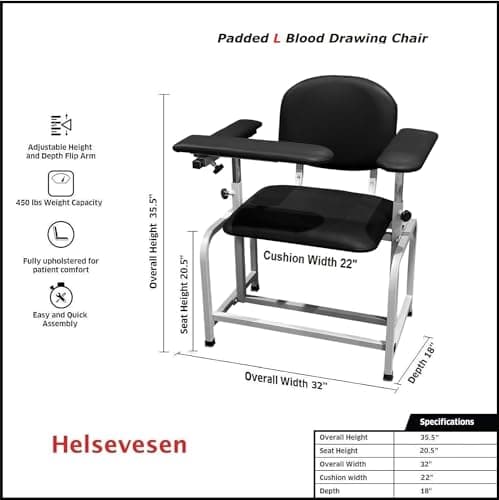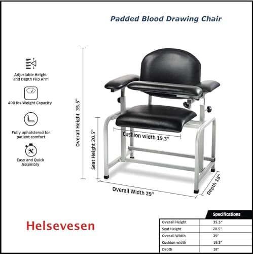 Helsevesen Blood Drawing Phlebotomy Chair, Comfortable Padded Lab Draw Chair with Adjustable Armrest (Black)