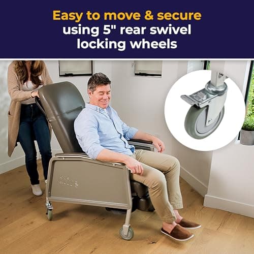 Lumex 3-Position Medical Recliner, Reclining Geri Chair with Wheels, Blue Ridge