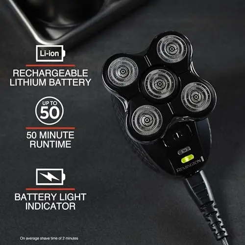 Remington XR7000 Balder Pro Rotary Shaver Rechargeable Waterproof Electric Razor for Men Cordless Lithium Power 5 Dual Track Flexing Heads and Pop-Up Trimmer Black