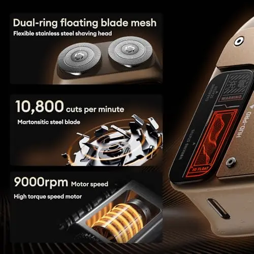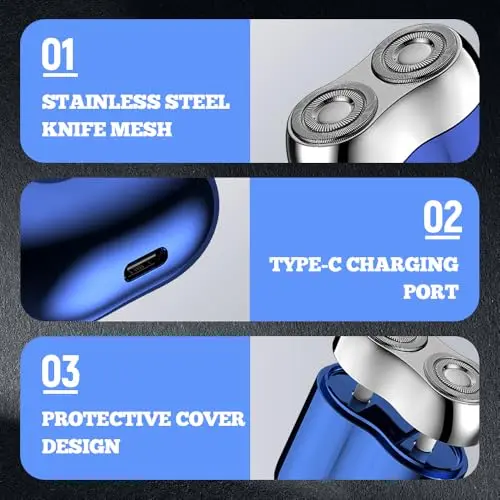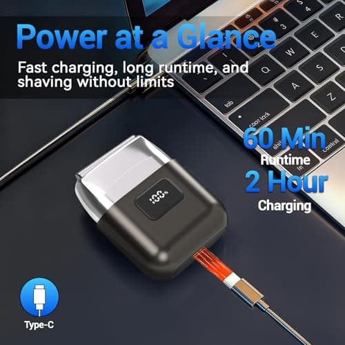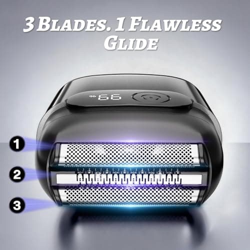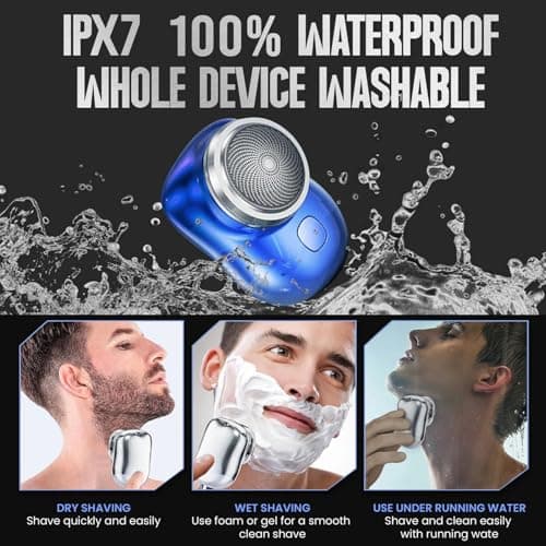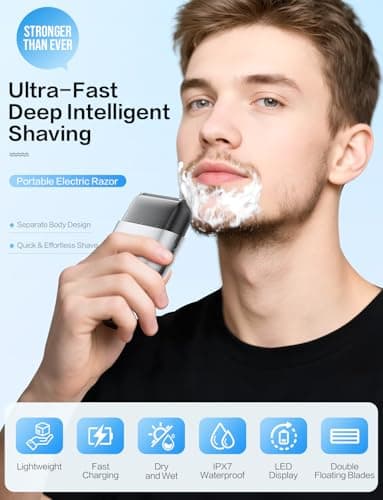 LYRSLF Electric Foil Shavers for Men: Mini Electric Razor, Foil Shaver for Face, IPX7 Waterproof Wet Dry Cordless Razor with 3 Floating Blades, LED Display for Travel & Home, USB Type C
