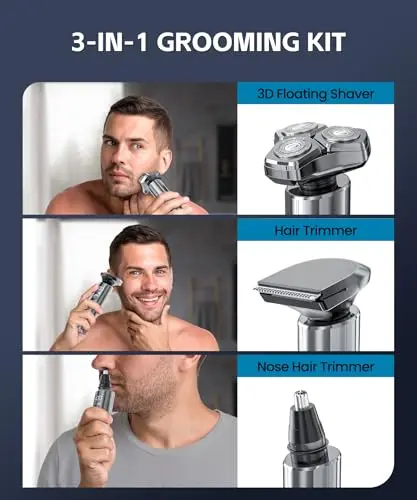 Foil Shavers for Men, Mini Electric Razors for Close Shaving Face with High Speed 3 Floating Blade Heads, USB C Fast Rechargeable Foil Shaver IPX7 Waterproof Wet Dry Travel Locked/Led Display