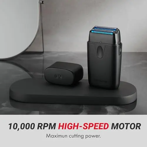 BaBylissPRO UVFOIL UV-Disinfecting Metal Double Foil Shaver, UV-Disinfecting Lid, Lithium-Ion Battery with Over 5.5-Hour Runtime, Black