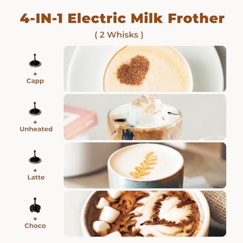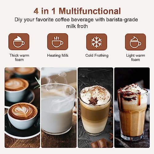 SIMPLETASTE Milk Frother, 4-in-1 Electric Milk Frother and Steamer, Automatic Warm and Cold Foam Maker and Milk Warmer for Latte, Cappuccinos, Macchiato, Cream