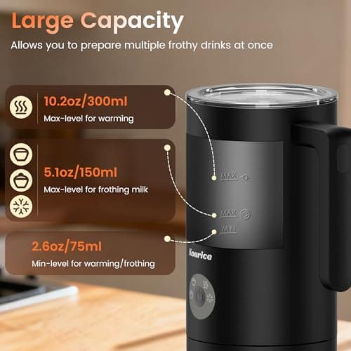 KIDISLE Electric Milk Frother, 4 In 1 Milk Frother and Steamer With Temperature Control, Automatic Warm and Cold Foam Maker for Coffee, Latte, Hot Chocolate, Cappuccinos, Macchiato, Black