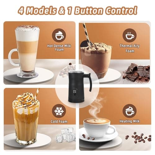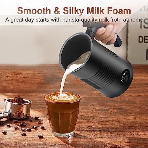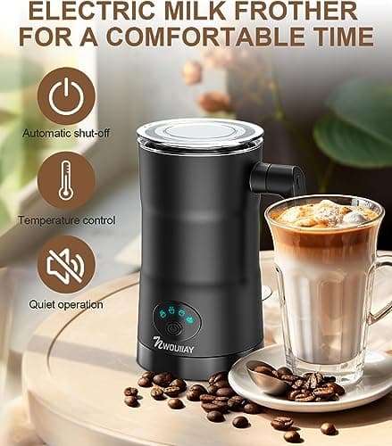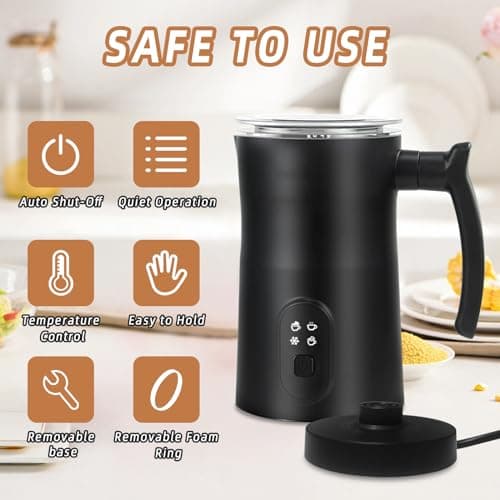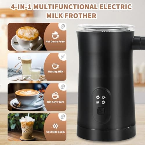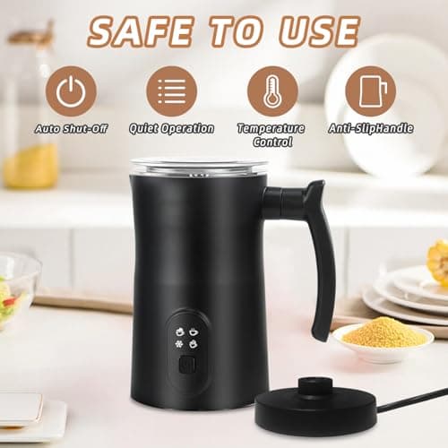 KIDISLE 4-in-1 Electric Milk Frother and Steamer, Milk Steamer with Auto Temperature Control, Warm & Cold Foam Maker, Fast Frother for Coffee, Latte, Hot Chocolate, Cappuccino, Macchiato, Black