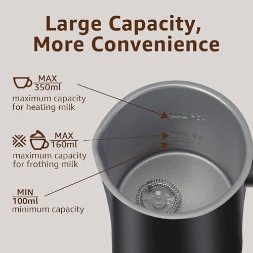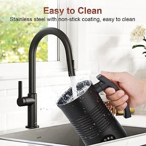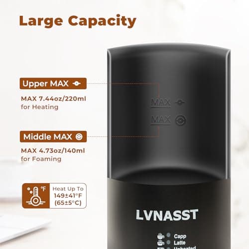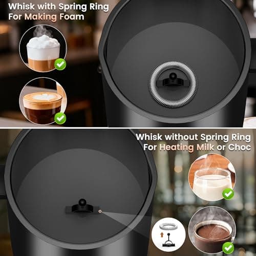 LVNASST Electric Milk Frother 4-IN-1 Hot Cold Foamer for Coffee Auto Shut-Off Milk Warmer, Non-Stick Interior Coating, 2 Whisks Black