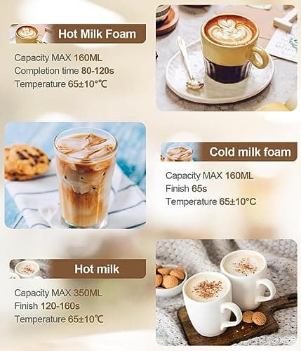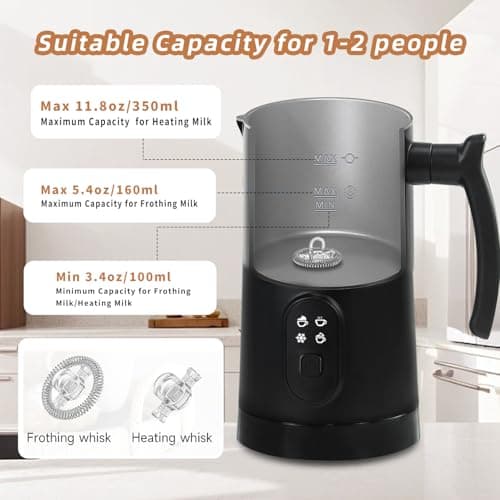 Milk Frother and Steamer 4 in 1 Automatic Coffee Steamer Frother, 11.8OZ / 350ML Warm and Cold Foam Frother for Coffee,Latte, Cappuccino, Macchiato, Hot Chocolate (Black)